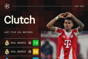 据Sofascore统计,迪亚斯近5场欧冠比赛皆参与进球,5场比赛总计打进3球,助攻3次。