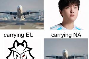 体育资讯3月22日讯 今日G2先锋赛上横扫Gen.G,赛后G2官推分享梗图:回国飞机扛起了LCK和LCS。