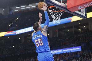 本场比赛,雷霆中锋哈滕发挥出色,尤其串联和拼抢篮板方面,他仅出战25分钟,7中4,罚球4中1拿到9分20篮板(7进攻篮板)10助攻2抢断,正负值+11。